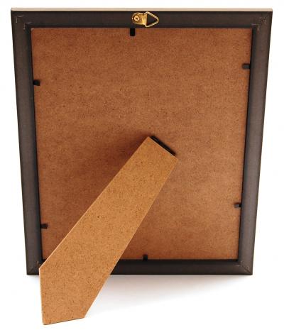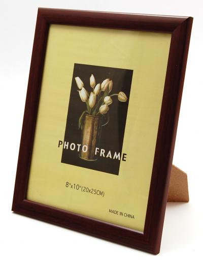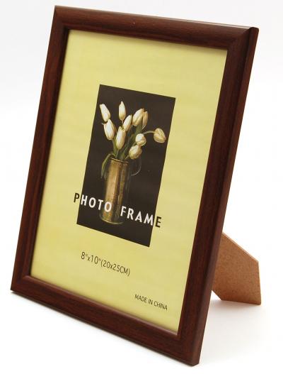 Стилна фоторамка в кафяв и тъмно кафяв цвят. Размер на снимката 20х25 см. Имитация на дърво. Рамката може да се закача на стена а също така има и опорно краче за да може да се поставя вертикално и хоризонтално.