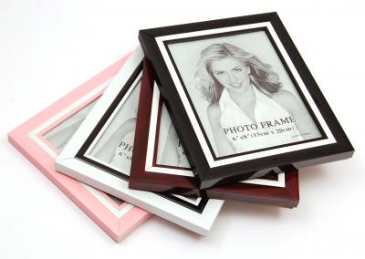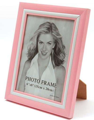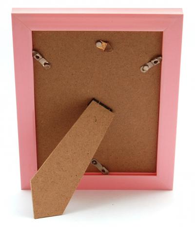 Розова, бяла, вишнава и черна рамки за снимка с размери 15х20 см. Рамките имат опорно краче за поставяне хоризонтално и вертикално а също така и кукичка за окачване на стена вертикално.