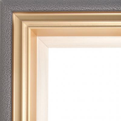 Стилен профил за рамка със сложен релеф. Профилът е комбиниран с цвят бял фладер и злато, а гърбът е сива кожа.