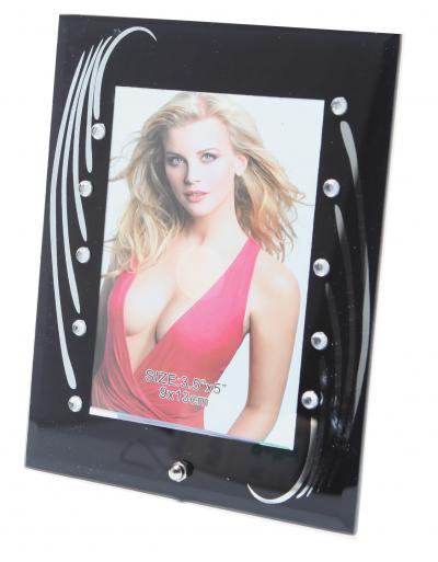 Черна стъклена рамка за снимка с размери 9х13см с огледални орнаменти.